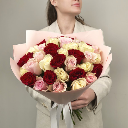 Роза 40 см - 35 шт., Современная упаковка - 1 шт., Лента атласная - 1 шт.Доставка 0₽ от 30-ти минут