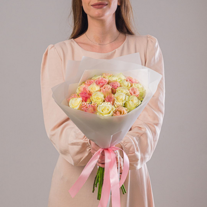 Роза 40 см - 25;Современная упаковка - 1;Лента атласная - 1;